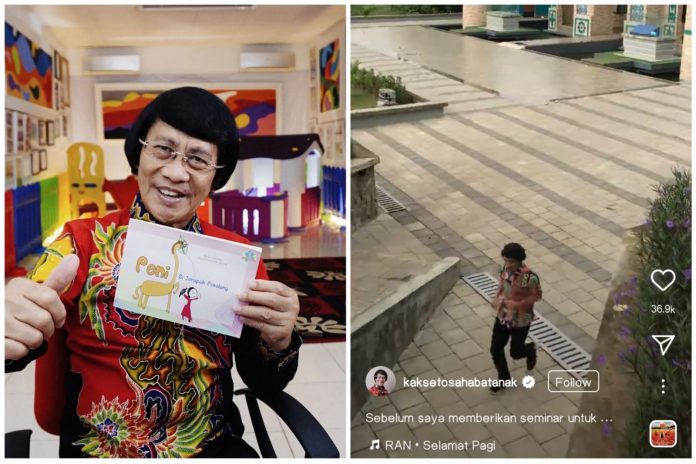 Prof. Dr. H. Seto Mulyadi, S.Psi., M.Si., Psikolog., yang lebih akrab dengan panggilan Kak Seto itu, nampaknya kembali menginspirasi warganet setelah aksinya berlari dengan outfits kemeja batik dan celana panjang berwarna hitam jadi perbincangan di sosial media.