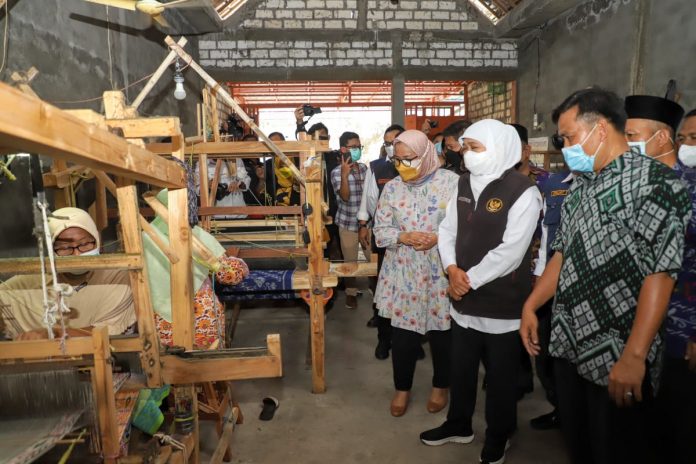 GRESIK, Nawacita – (4 Februari 2022) – Gubernur Jawa Timur Khofifah Indar Parawansa mengunjungi sentra kain tenun dan sarung tenun di Desa Wedani, Kecamatan Cerme, Kab. Gresik (4/2).