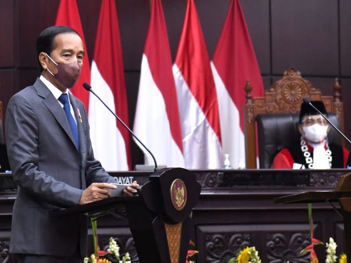 “Saya yakin dan percaya dengan transformasi yang dilakukan, MK akan menemukan momentum menyiapkan langkah lebar untuk melakukan lompatan kemajuan, mengukuhkan peran sebagai pengawal dan penjaga konstitusi,” ujar Presiden saat memberikan sambutan dalam Sidang Pleno Khusus Penyampaian Laporan Mahkamah Konstitusi Tahun 2021 di Ruang Sidang Mahkamah Konstitusi, Jakarta, pada Kamis, 10 Februari 2022.