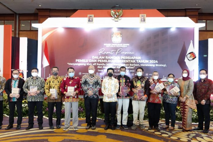 Turut hadir dalam rapat itu Kepala KPU RI Ilham Saputra, Ketua KPU provinsi seluruh Indonesia, dan beberapa Ketua KPU kab/kota Indonesia.