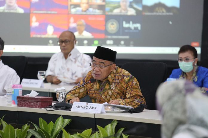 Sementara Menko PMK didampingi oleh Sesmenko PMK dan Deputi 4 Kemenko PMK. Adapun yang hadir secara daring, Mensos Tri Rismaharini, Menkominfo Johhny G Plate, Menparekraf Sandiaga Uno, serta para pejabat tinggi pimpinan kementerian/lembaga terkait lainnya.
