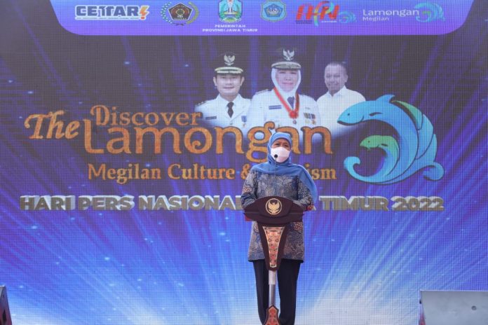 Menyambut kehadiran Gubernur Khofifah, Bupati Lamongan Yuhronur Effendi menyampaikan terima kasih atas atas pemilihan Lamongan sebagai tuan rumah HPN tahun ini.