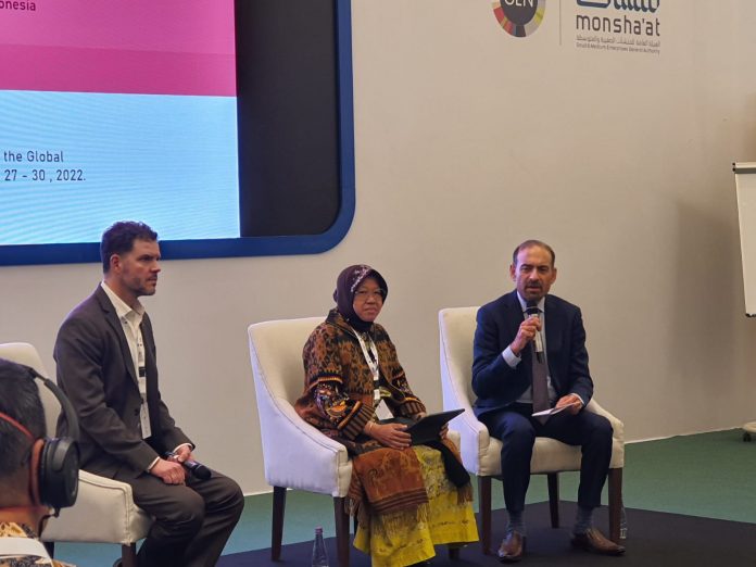 Riyadh, Nawacita | Di sela-sela menghadiri Kongres Kewirausahaan Global (GEC) di Riyadh, Arab Saudi, Menteri Sosial Tri Rismaharini menyapa 20-an orang perwakilan Pekerja Migran Indonesia (PMI) di Kedutaan Besar RI (KBRI), Riyadh.