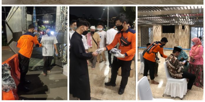 Masker tersebut dibagikan tidak hanya kepada jamaah sholat Tarawih saja, namun BNPB sudah membagikan masker sejak sore hari pada jamaah yang telah hadir untuk melakukan buka puasa. Selain itu masker dibagikan kepada pedagang dan warga masyarakat yang berada di Masjid Istiqlal.