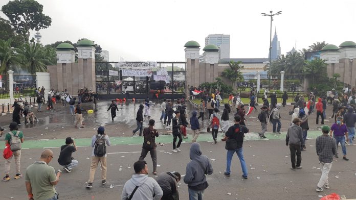 Jakarta, Nawacita – Unjuk rasa yang digelar oleh aliansi mahasiswa yang tergabung dalam Badan Eksekutif Mahasiswa Seluruh Indonesia (BEM SI) berakhir ricuh. BEM SI menggelar unjuk rasa di Gedung DPR RI Jalan Gatot Subroto, Senayan, Jakarta Pusat l.