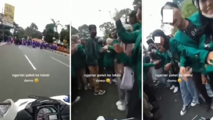 Video viral ini diunggah oleh akun TikTok @putufeat yang kemudian ramai diperbincangkan di media sosial. Dalam video tampak kurir dengan motor Honda Beat berjalan membawa paket melewati aksi demo yang dilakukan mahasiswa.