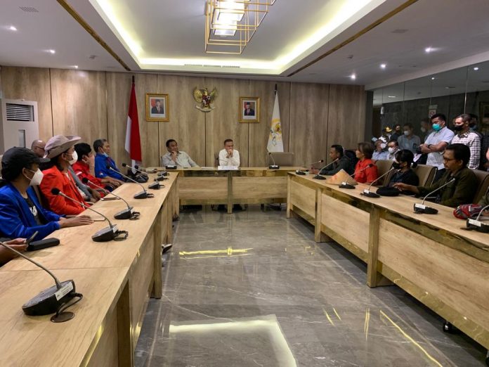 Jakarta, Nawacita – Pimpinan DPR RI yang diwakili oleh Wakil Ketua DPR Sufmi Dasco Ahmad dan Rahmad Gobel menerima perwakilan dari mahasiswa dan buruh yang hari menggelar aksi demo di depan Gedung DPR RI, Kamis (21/04/2022).
