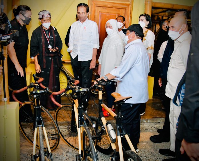 Ngada, Nawacita | Berkunjung ke Kampus Bambu Turetogo, Kabupaten Ngada, Provinsi Nusa Tenggara Timur (NTT), pada Rabu, 1 Juni 2022, Presiden Joko Widodo dan Ibu Iriana Joko Widodo berkesempatan melihat berbagai produk bambu, seperti sepeda bambu yang dinamai Spedagi, bambu laminasi yang dapat digunakan untuk tiang, dinding, hingga lantai.