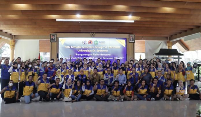 Siti Marwiyah dalam sambutannya mengatakan kegiatan KKN Tematik di Kabupaten Sidoarjo sebelumnya telah dirintis oleh PSBL Unitomo sejak tahun 2017 di Desa Bungurasih dengan tema Dasawisma Siaga Bencana. “Kemudian tahun 2018 dengan tema Pasar Tangguh Bencana di Pasar Larangan Sidoarjo, tahun 2019 tentang Puskesmas Siaga Bencana di Trosobo. Sedangkan pada 2020 mengusung tema Pengurangan Risiko Bencana Berbasis Komunitas di Kec. Tanggulangin, selanjutnya 2021 di Sedati dengan tema Desa Wisata Berbasis Mitigasi Bencana. Dan saat ini di lima kecamatan di Sidoarjo dengan tema Sekolah / Madarasah Aman Bencana (SMAB) sesuai dengan Peraturan Kepala (Perka) Badan Nasional Penanggulangan Bencana (BNPB) nomor 4 thn 2012 tentang Sekolah Madrasah Aman Bencana atau SMAB yang lahir saat Prof Syamsul Maarif menjadi kepala BNPB periode 2008 – 2015”, jelasnya.