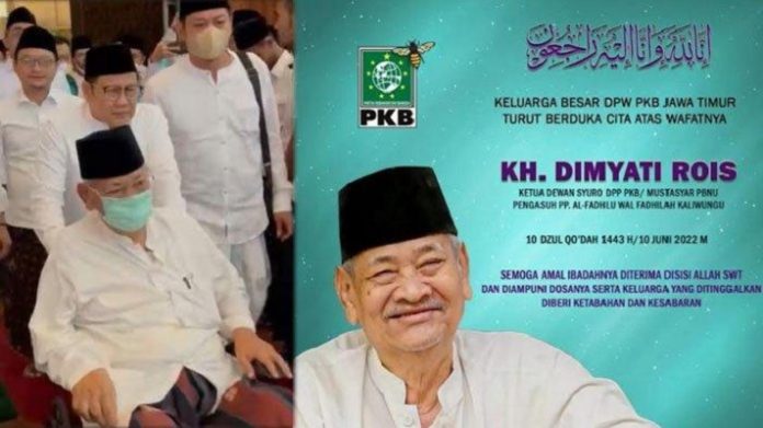 JAKARTA, Nawacita – Mustasyar Pengurus Besar Nahdatul Ulama (PBNU) ini wafat di RS Telogorejo, Semarang, Jumat (10/6/22) pukul 01.13 WIB. Dimyati Rois wafat pada usia usia 77 tahun. Kabar meninggalnya Pengasuh Pondok Pesantren Al-Fadlu wal Fadhilah, Kaliwungu, Kabupaten Kendal tersebut dibenarkan oleh Sekretaris DPW PKB Jawa Tengah, Sukirman.