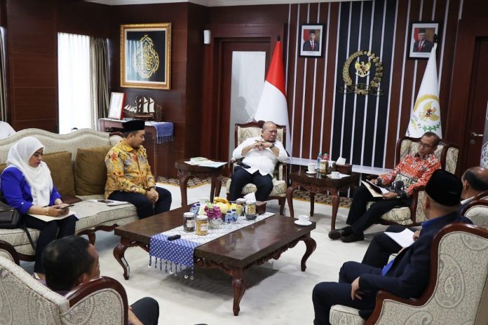 Ketua DPD RI didampingi Wakil Ketua DPD RI Nono Sampono, Senator asal Lampung Bustami Zainudin dan Ahmad Bastian, Senator asal Kepri Dharma Setiawan dan Sekjen DPD RI Rahman Hadi.