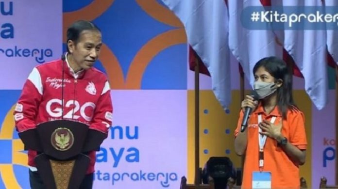 “Di kampung kami jaringan susah, jadi saya harus ke kota untuk mendaftar dari gelombang 1-13 itu saya daftar tidak lolos-lolos,” ujarnya di atas panggung. Dia berharap agar program Kartu Prakerja dilanjutkan meskipun masa jabatan Jokowi berakhir dalam dua tahun lagi.
