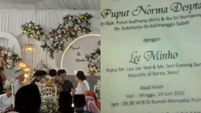 Rekaman video tersebut diunggah lewat akun Instagram dengan nama @pekalonganinfo yang mempertontonkan prosesi ijab qobul. Pengantin wanita diketahui bernama Puput warga Subah, Batang, Jawa Tengah yang menikah dengan Lee Minho, pria asal Korea, Seoul.