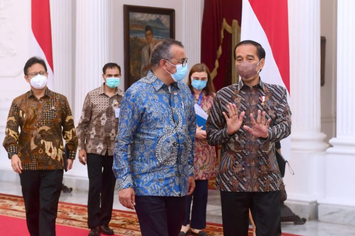Menkes Budi saat mendampingi Presiden Jokowi menerima kunjungan kehormatan Dirjen WHO Tedros Adhanom Ghebreyesus di Istana Merdeka Jakarta (21/06/22) (Foto: Muchlis Jr – Biro Pers Sekretariat Presiden)