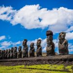 Patung Moai yang terletak di Pulau Paskah, Chili.