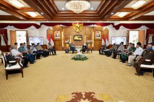 Surabaya | Nawacita – Forkopimda Jawa Timur Gubernur Jatim Khofifah Indar Parawansa, Pangdam V Brawijaya Mayjen TNI Nurchahyanto, Kapolda Jawa Timur Irjen Pol Nico Afinta, Kapoksahli Koarmada II Laksma TNI Eko Gajah Seno dalam hal ini mewakili Pangkoarmada II, Ketua DPRD Jatim kusnadi dan Asisten Perdata dan TUN Kejati Jatim I Putu Gede Astawa yang mewakili Kajati Jatim, Kamis (30/6/2022) sore, yang bertempat di Gedung Negara Grahadi Surabaya, mengikuti Koordinasi dengan Dewan Ketahanan Nasional.