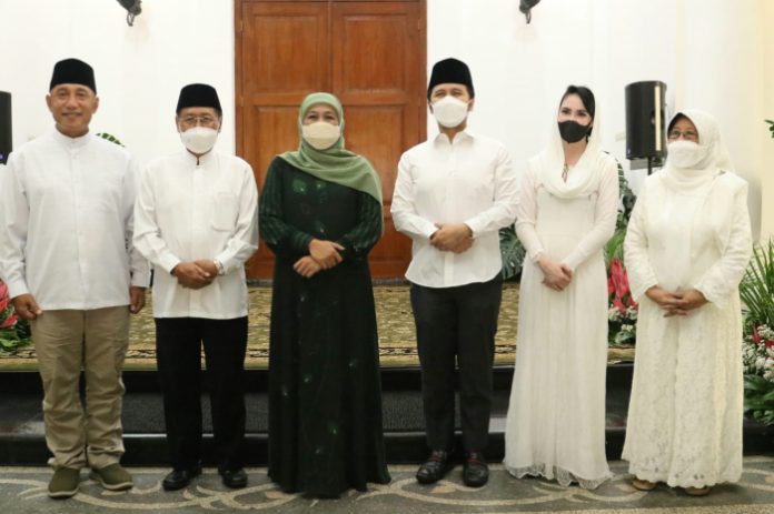 Di akhir nampak para kepala OPD yang diawali Wakil Gubernur Jatim beserta istri, PJ. Sekdaprov Jatim berjabat tangan dan memberikan doa kepada Gubernur Khofifah dengan diiringi lantunan bacaan talbiyah.