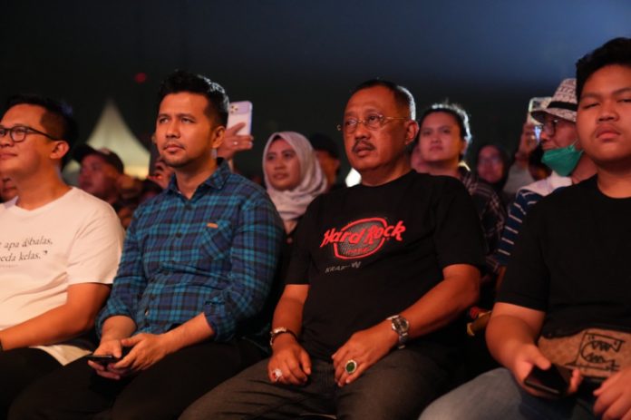 Wakil Walikota Surabaya Armuji yang membaur bersama wakil Gubernur Jatim  Emil Elestianto Dardak ditengah konser bersama pemuda pemudi yang antusias memeriahkan pasca dua tahun pandemi Covid – 19 ditengah pembatasan aktivitas masyarakat.