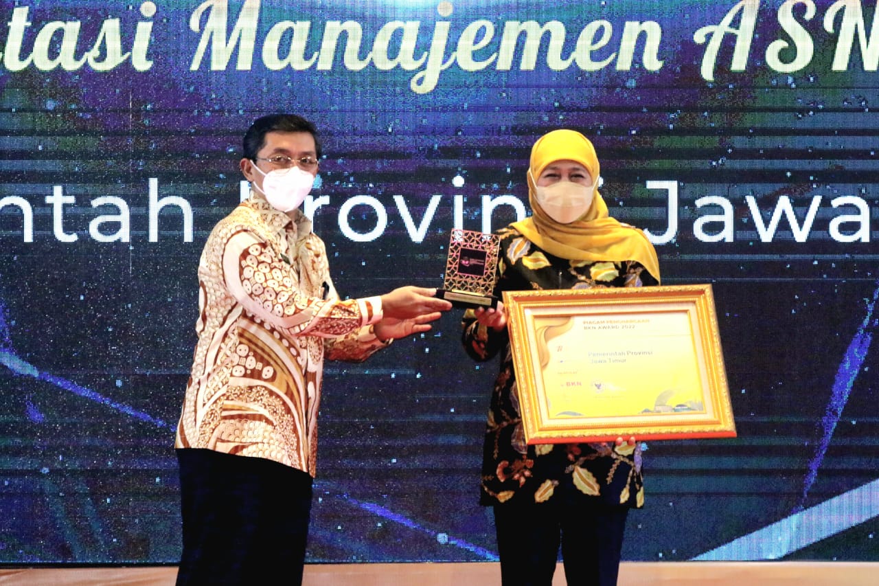Sederet penghargaan tersebut diberikan langsung oleh Wakil Kepala BKN Supranawa Yusuf yang diterima langsung oleh Gubernur Jawa Timur Khofifah Indar Parawansa di Golden Tulip Holland Resort Batu, Rabu (10/8).