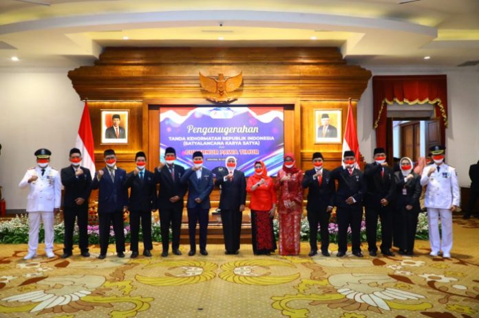 Gubernur Khofifah menyampaikan rasa terima kasih dan penghargaan yang tinggi kepada penerima Tanda Kehormatan Republik Indonesia Satyalancana Karya Satya yang telah mendedikasikan energi, dedikasi dan pengabdiannya dalam mendidik dan mentransformasikan keilmuan serta layanan kesehatan yang membutuhkan banyak pengorbanan terutama saat kasus covid terjadi secara eksponensial di Jatim.