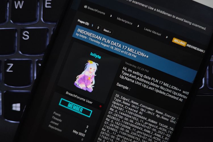 Sebelumnya, pengguna internet di Twitter melaporkan adanya dugaan penjualan lebih dari 17 juta data pelanggan PLN. Berdasarkan tangkapan layar yang dibagikan, menunjukkan laman web breached.to dengan akun bernama “loliyta”, yang mengklaim menjual data pengguna PLN.