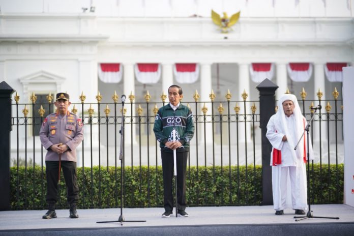 Kirab merah putih ini dilepas oleh Presiden Indonesia Joko Widodo (Jokowi) dari depan istana merdeka bersama Ulama karismatik Habib Luthfi bin Ali bin Yahya dan Kapolri Jenderal Listyo Sigit.