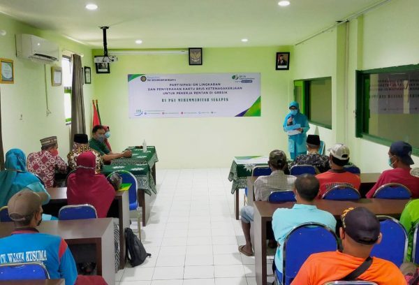 Gresik | Nawacita – RS PKU Muhammadiyah Sekapuk dukung Program Gerakan Nasional Peduli Perlindungan Pekerja Rentan (GN Lingkaran) BPJS Ketenagakerjaan. Dukungan tersebut diwujudkan dengan memberikan bantuan kepesertaan bagi ratusan pekerja rentan di Ujungpangkah, Kabupaten Gresik.
