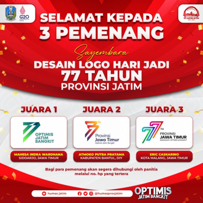 Sebagaimana diketahui, menyambut hari jadi ke-77 Pemerintah Provinsi Jawa Timur melalui Biro Administrasi Pimpinan mengadakan sayembara untuk menentukan logonya. Pendaftaran dibuka mulai 30 Agustus 2022 sampai dengan 6 September 2022.