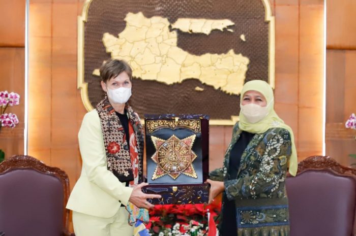 Surabaya, Nawacita – Gubernur Jawa Timur Khofifah Indar Parawansa menerima kunjungan Duta Besar (Dubes) Swedia untuk Indonesia, Marina Berg, di Gedung Negara Grahadi Surabaya, Kamis (13/10).