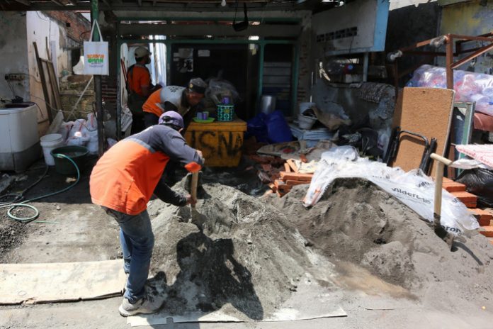 SURABAYA, Nawacita – Wali Kota Surabaya Eri Cahyadi meninjau langsung pengerjaan program Dandan Omah atau Rumah Tidak Layak Huni (Rutilahu) di Jalan Sukolilo 1-B/34 RT 01 RW 02 dan di Jalan Kejawen Lor 2 No. 14 Kelurahan Sukolilo Baru, Kecamatan Bulak Kota Surabaya, Kamis 13 Oktober 2022. Sebab, selain melakukan perbaikan rumah, Pemerintah Kota (Pemkot) Surabaya juga fokus dalam memperbaiki perekonomian warga.