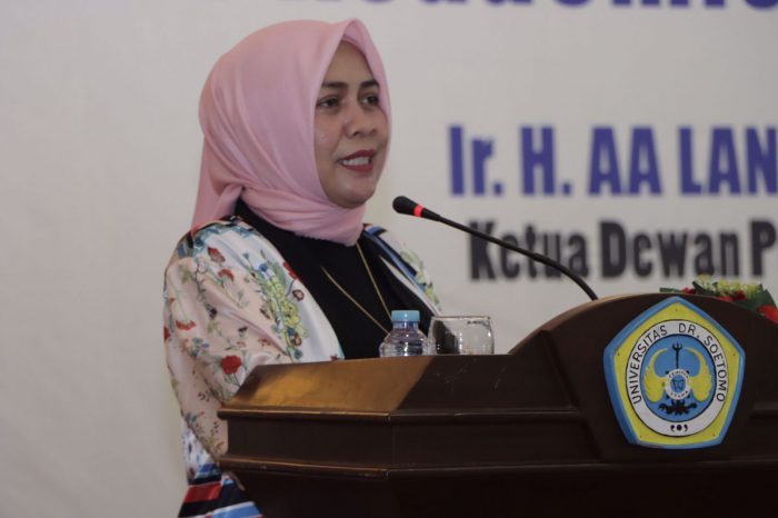 SURABAYA, Nawacita (18/10), Ketua Dewan Perwakilan Daerah (DPD) Republik Indonesia (RI), AA LaNyalla Mahmud Mattalitti mengisi Kuliah Umum di Universitas Dr. Soetomo dengan diikuti sekitar 500 peserta dari unsur mahasiswa, dosen dan pimpinan fakultas. Bertempat di Auditorium Ki Moh. Saleh, kuliah umum bertajuk “Wawasan Kebangsaan dan Kewirausahaan” dibuka langsung oleh Rektor, Siti Marwiyah.