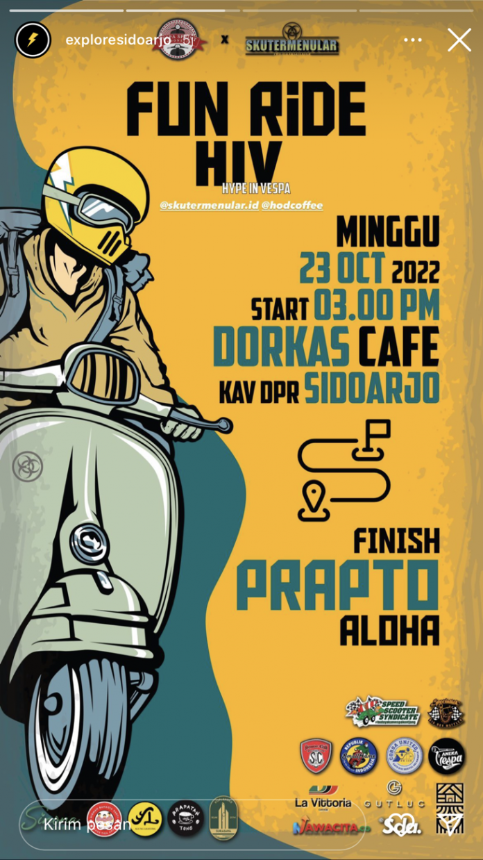 Sidoarjo, Nawacita – Buat kalian penghobi vespa, sebentar lagi akan ada kegiatan Vespa Fun HIV (Hype In Vespa) 2022.