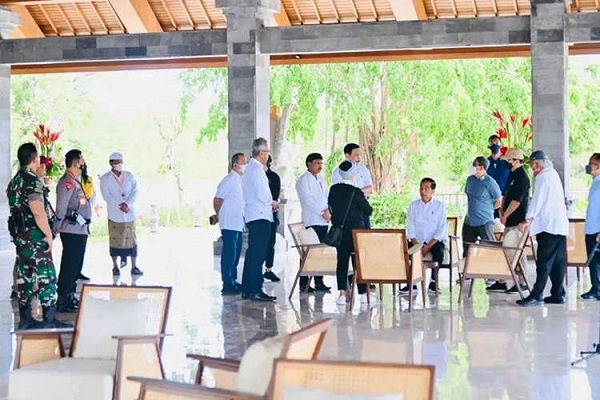 Turut mendampingi Presiden dalam kegiatan tersebut adalah Menteri Koordinator Bidang Kemaritiman dan Investasi Luhut Binsar Pandjaitan, Menteri Sekretaris Negara Pratikno, Menteri Luar Negeri Retno Marsudi, Menteri PUPR Basuki Hadimuljono, Menteri Komunikasi dan Informatika Johnny G. Plate, Panglima TNI Jenderal Andika Perkasa, Kapolri Jenderal Listyo Sigit Prabowo, dan Gubernur Bali I Wayan Koster. (BPMI Setpres)