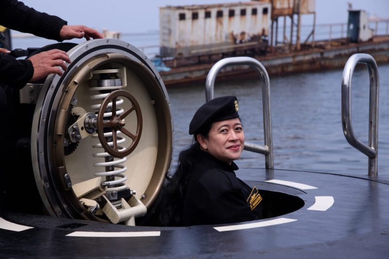 Naik Kapal Selam KRI Alugoro-405, Puan Terima Brevet Kehormatan Hiu Kencana TNI AL