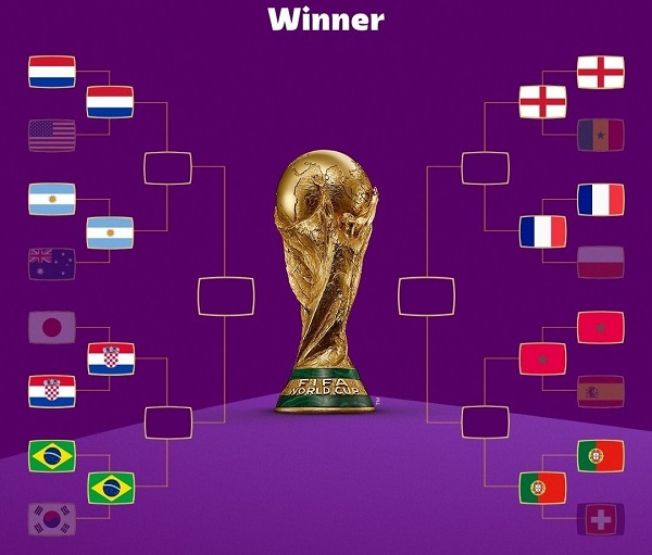 Berikut ini tim-tim yang sejauh ini sudah lolos ke babak perempat final Piala Dunia 2022: