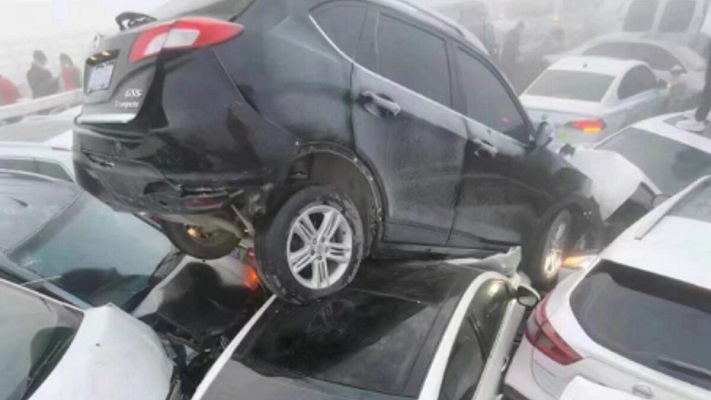 Kecelakaan Ratusan Kendaraan di Jembatan China