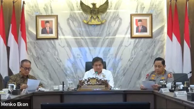 Menteri Koordinator Bidan Perekonomian Airlangga Hartarto (tengah) dalam konferensi pers Launching Skema Normal Program Kartu Prakerja (05/01/2023).
