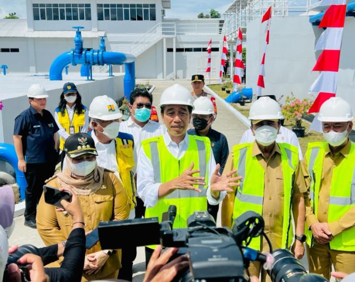 Presiden Joko Widodo meresmikan sistem penyediaan air minum (SPAM) regional Durolis (Dumai-Rokan Hilir-Bengkalis) (05/01/2023) (Foto: Laily Rachev – Biro Pers Sekretariat Presiden)