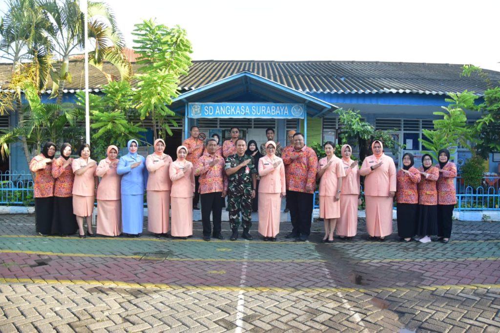 Surabaya, Nawacita – TNI AU. Dalam rangka pembukaan pelaksanaan FESA (Festival Edukasi Sekolah Angkasa) di jajaran TNI AU di seluruh Indonesia, Komandan Lanud Muljono, Kolonel Pnb Sugeng Budiono, S. Sos., M. A. P didampingi oleh Ketua Yasarini Pengurus Cabang Lanud Muljono, Ny. Melly Sugeng Budiono, mengikuti acara pembukaan Festival Edukasi Sekolah Angkasa (FESA) yang dipimpin secara langsung oleh Kepala Staf Angkatan Udara secara virtual di SD Angkasa Kenjeran, Selasa (10/1).