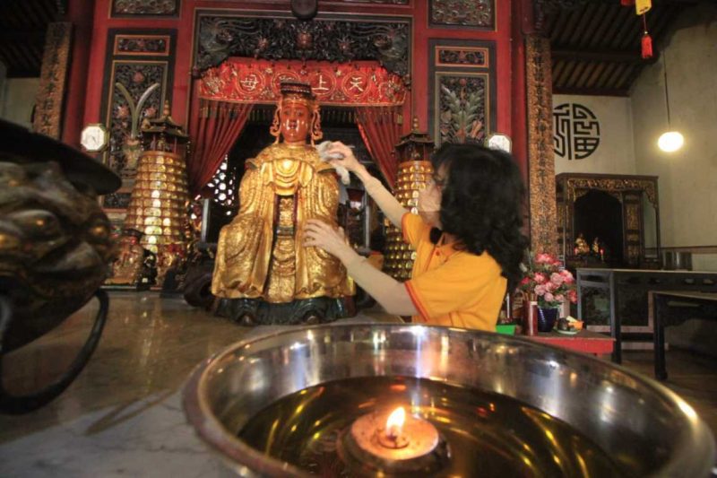“Karena itu, patung-patungnya kosong. Maka kita bersihkan. Harapannya, nanti setelah Imlek para dewa pulang, sudah bersih,” katanya.