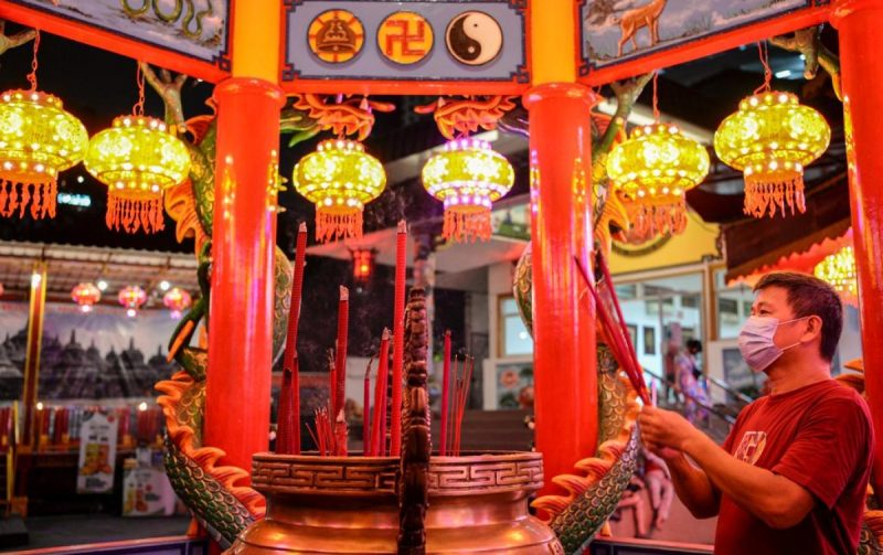 Warga keturunan Tionghoa bersembahyang di Wihara Amurva Bhumi (Hok Tek Tjeng Sin), Karet Semanggi, Jakarta.