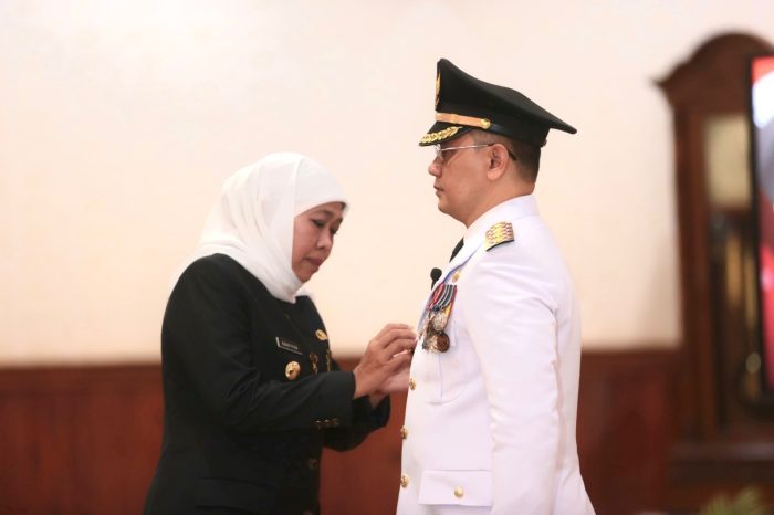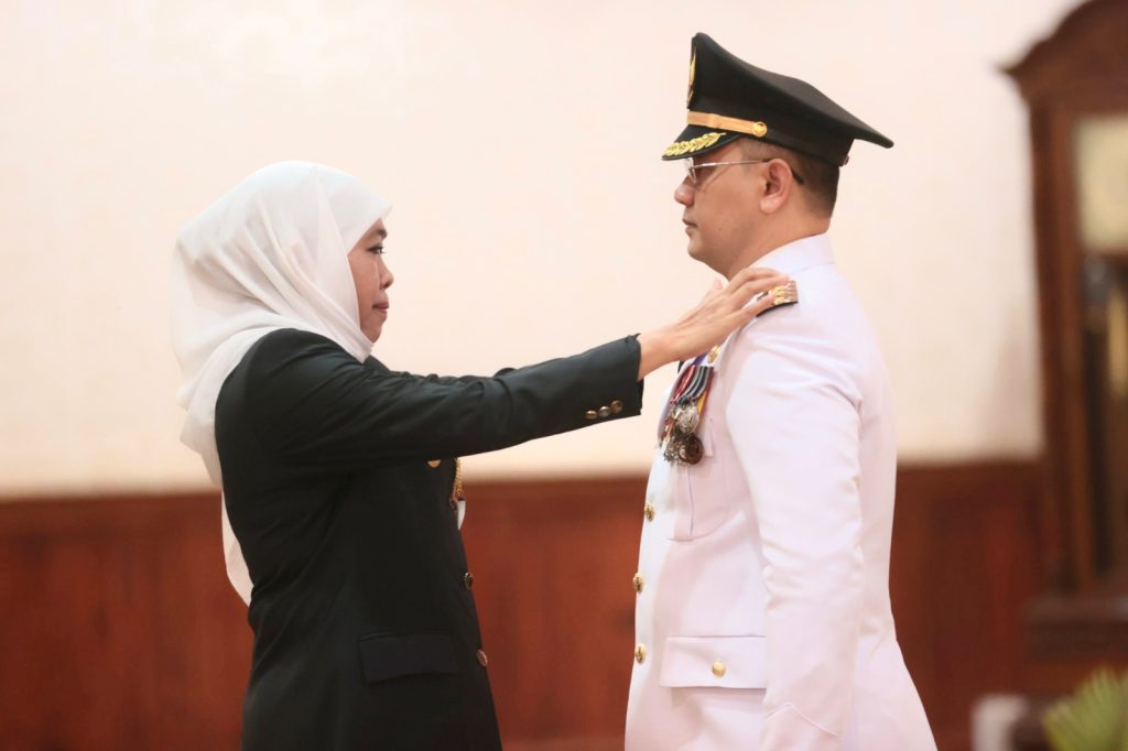 Surabaya, Nawacita – Gubernur Jawa Timur Khofifah Indar Parawansa secara resmi melantik Aries Agung Paewai S.STP. MM yang saat ini juga menjabat sebagai Kepala Badan Pengembangan Sumber Daya Manusia (BPSDM) Jatim sebagai Penjabat (Pj) Walikota Batu di Gedung Negara Grahadi, Surabaya, Kamis (19/1).