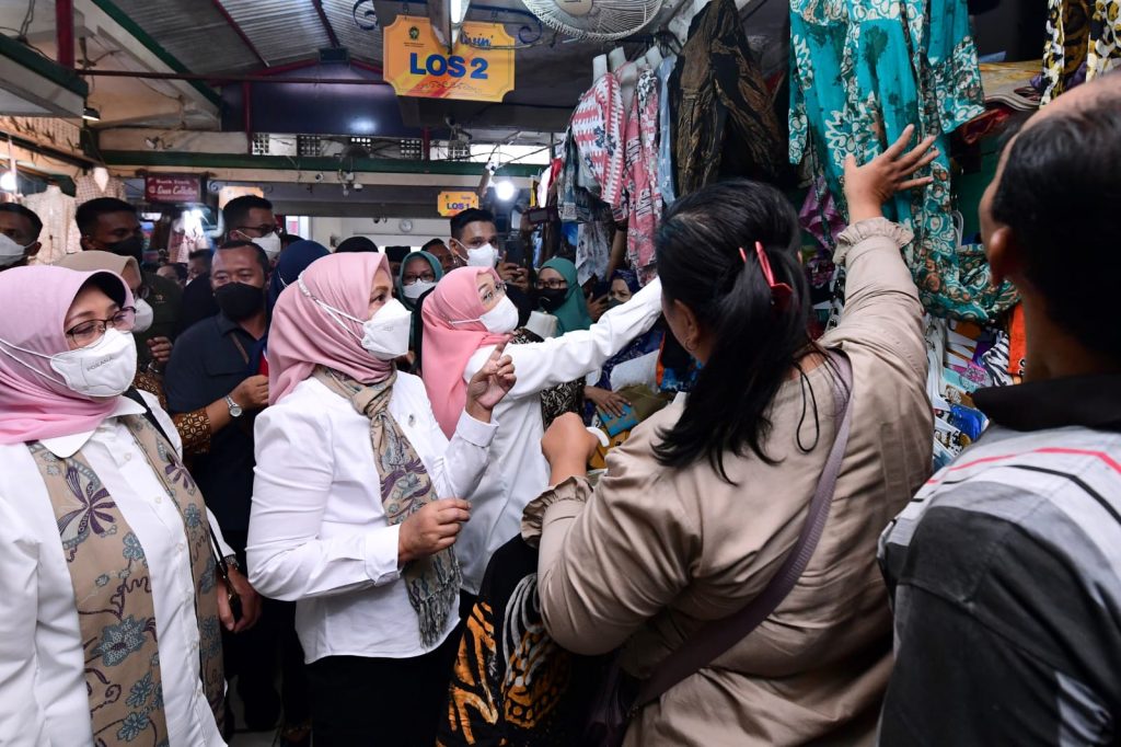 Di sana, Ibu Iriana, Ibu Wury, dan para anggota OASE KIM menyapa para pedagang yang tengah berjualan. Beberapa kali Ibu Iriana dan Ibu Wury tampak berhenti di kios para pedagang dan menanyakan geliat perekonomian di pasar usai kebijakan Pemberlakuan Pembatasan Kegiatan Masyarakat (PPKM) dicabut.