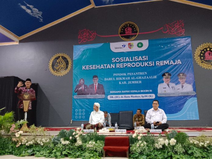 “Sesuai dengan arahan Wakil Presiden untuk melibatkan tokoh-tokoh agama dalam mensosialisasikan usia ideal menikah baik bagi putra maupun bagi putri untuk menciptakan rumah tangga harmonis, anak-anak yang hebat dan keluarga yang berkualitas,” kata Hasto Wardoyo, Kepala BKKBN RI usai mengisi materi pada acara Sosialisasi Kesehatan Reproduksi Remaja di Pondok Pesantren Darul Hikmah Al-Ghazaalie Jember, Selasa (31/01).