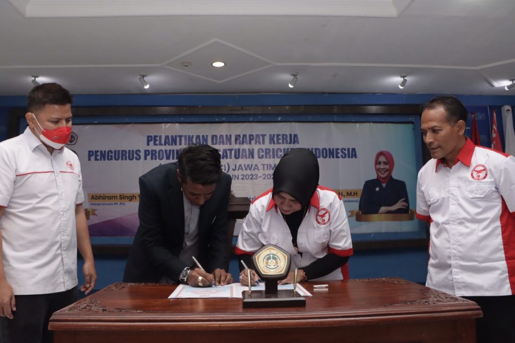 Surabaya, Nawacita – Jum’at (03/02), Rektor Universitas Dr. Soetomo, Siti Marwiyah resmi dilantik menjadi Ketua Umum Pengurus Provinsi (Pengprov) Persatuan Cricket Indonesia (PCI) Jawa Timur Masa Bakti 2023-2027 oleh Abhiram Singh Yadav, Ketua Umum Pengurus Pusat (PP) PCI.