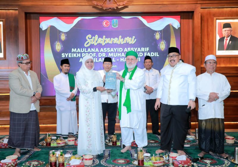 Surabaya, Nawacita 9 FEBRUARI 2023 – Gubernur Jawa Timur Khofifah Indar Parawansa menerima silaturahmi ulama besar asal Turki yaitu Maulana Assayyid Assyarif Syeikh Prof Dr Muhammad Fadhil Al-Jilani Al-Hasani di Gedung Negara Grahadi, Rabu (8/2) sore.