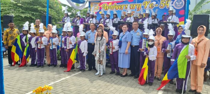 Surabaya, Nawacita – TNI AU. Komandan Lanud Muljono, Kolonel Pnb Sugeng Budiono, S.Sos.,M.A.P. didampingi oleh Ketua Yasarini Cabang Lanud Muljono,Ny. Sugeng Budiono, menghadiri expo dan perayaan HUT SD Angkasa ke-54, di SD Angkasa, Kenjeran, Sabtu (25/2).
