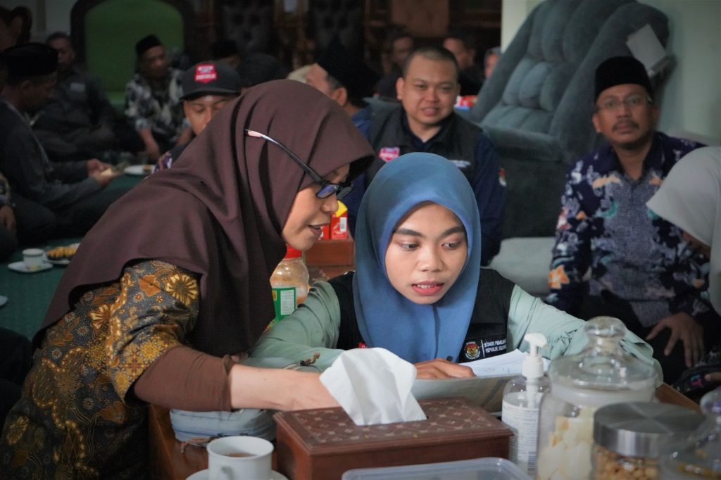 Di hadapan Gus Ali, sapaan Pengasuh Pondok Pesantren tersebut Petugas Pantarlih Desa Lebo, Maudya tampak hati-hati menjelaskan prosedur coklit. Serta meminta KK dan KTP Gus Ali.