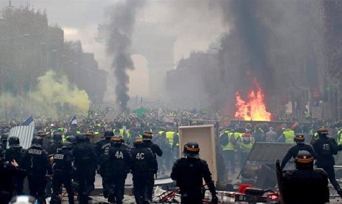 JAKARTA, Nawacita – Prancis Rusuh Jalanan Seperti Medan Perang, Polisi anti huru hara bentrok dengan pengunjuk rasa pada Jumat malam di Paris ketika demonstrasi baru terjadi menentang rencana pemerintah untuk menaikkan usia pensiun negara Prancis.