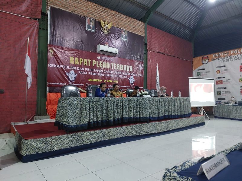 rapat pleno terbuka, (5/4/2023). Foto : Dok. Bawaslu Kabupaten Mojokerto